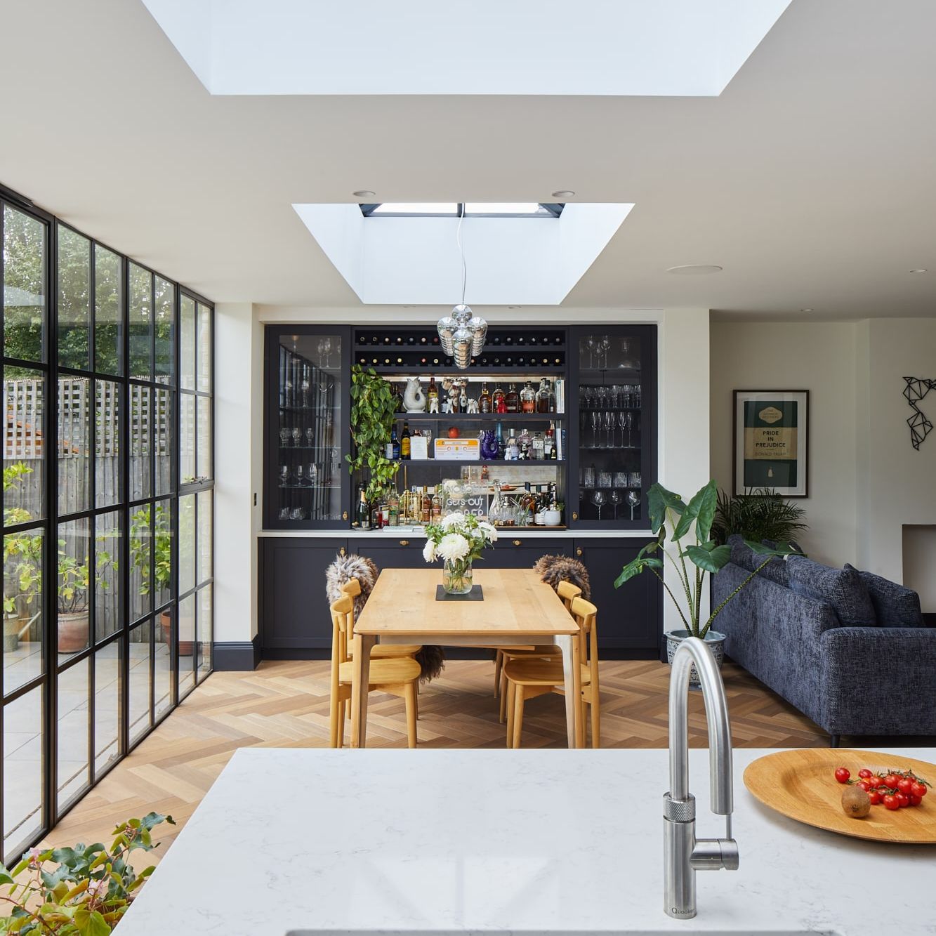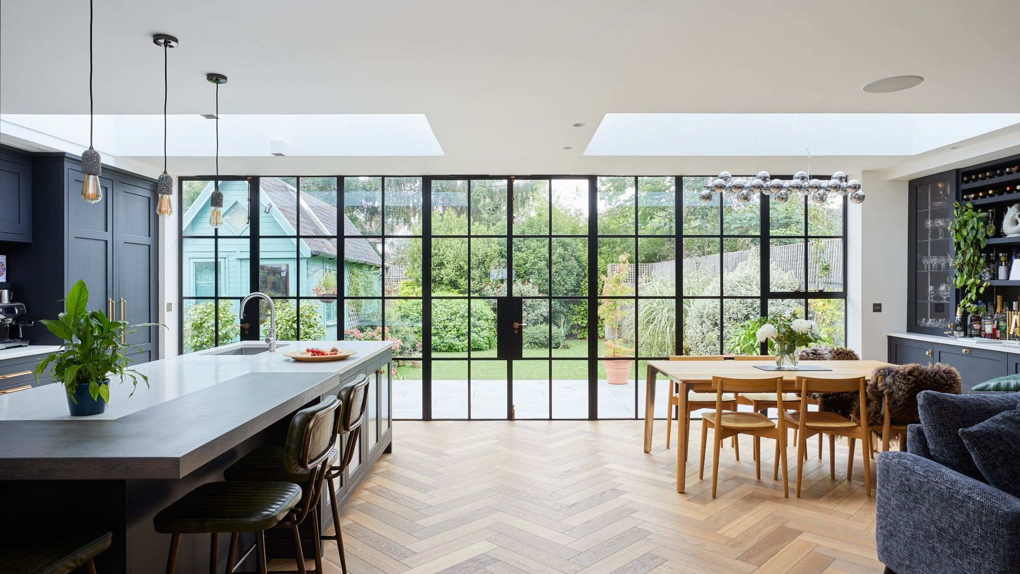 Complete remodelling and extension to a large home in Kew, London. The clients opted for a large open plan space at the rear that really made use of the width of the plot using large crittall style glazing that improved their outlook onto the garden. The first floor was reconfigured to house a master suite at the rear also.
