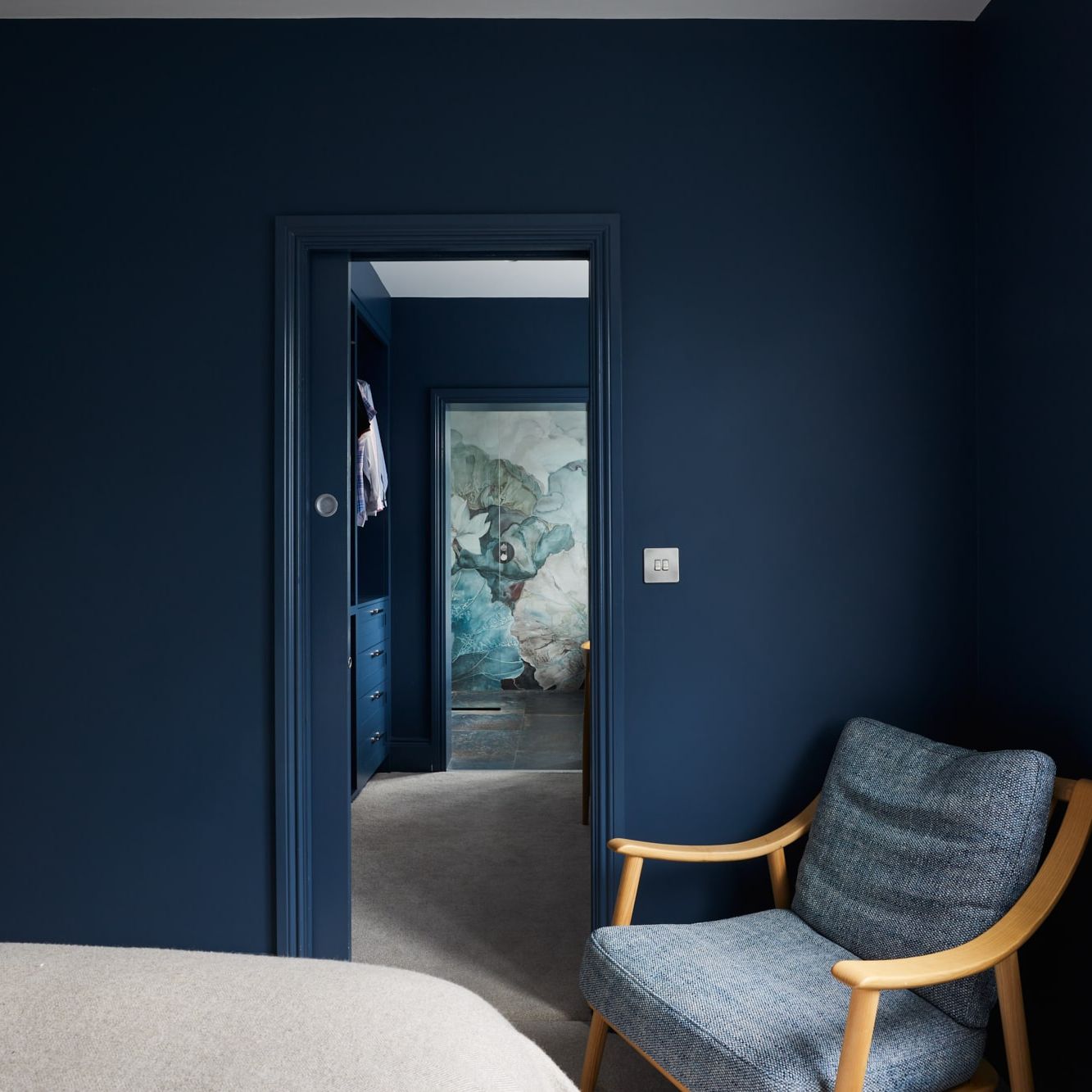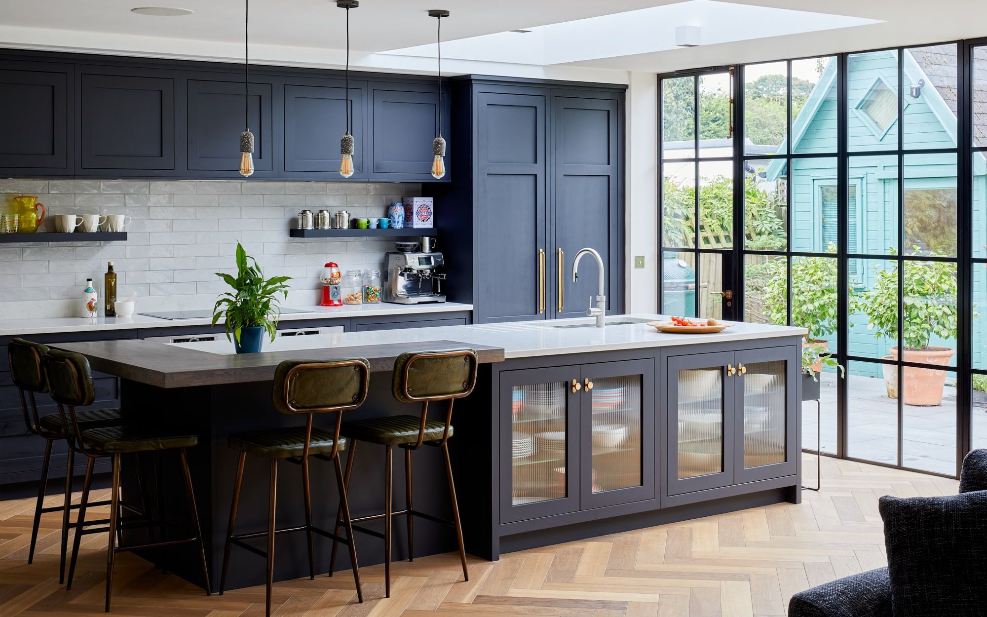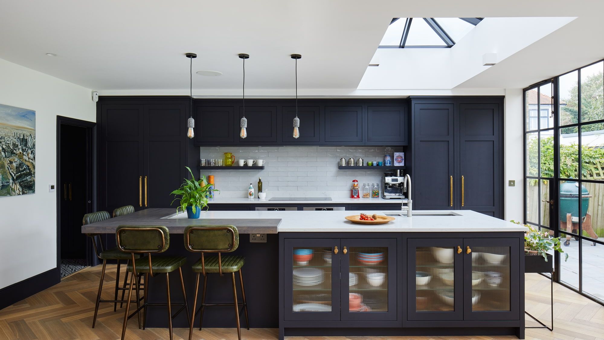 A beautiful bespoke kitchen and matching utility separated by a sliding pocket door.