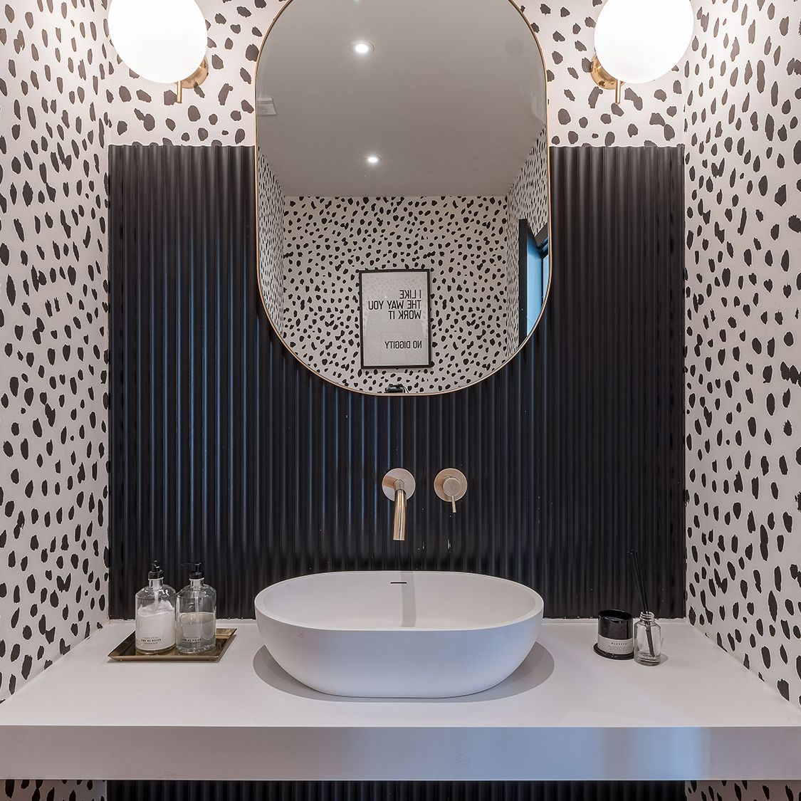 The design included five bedrooms and four bathrooms across the first and second floors. Each bathroom had its own distinct style including a range of tiles, stone finishes, wall paper and timber panelling.