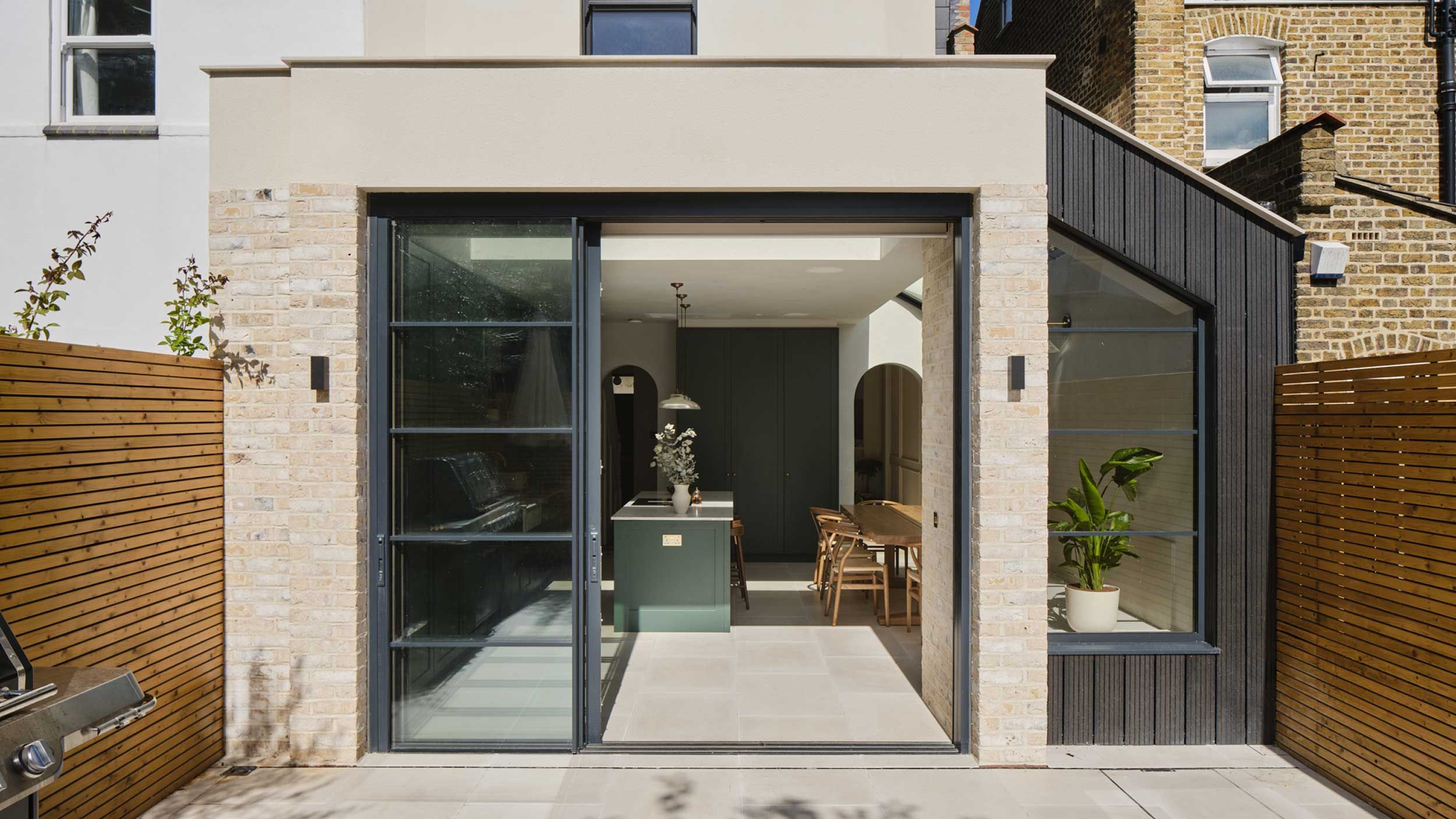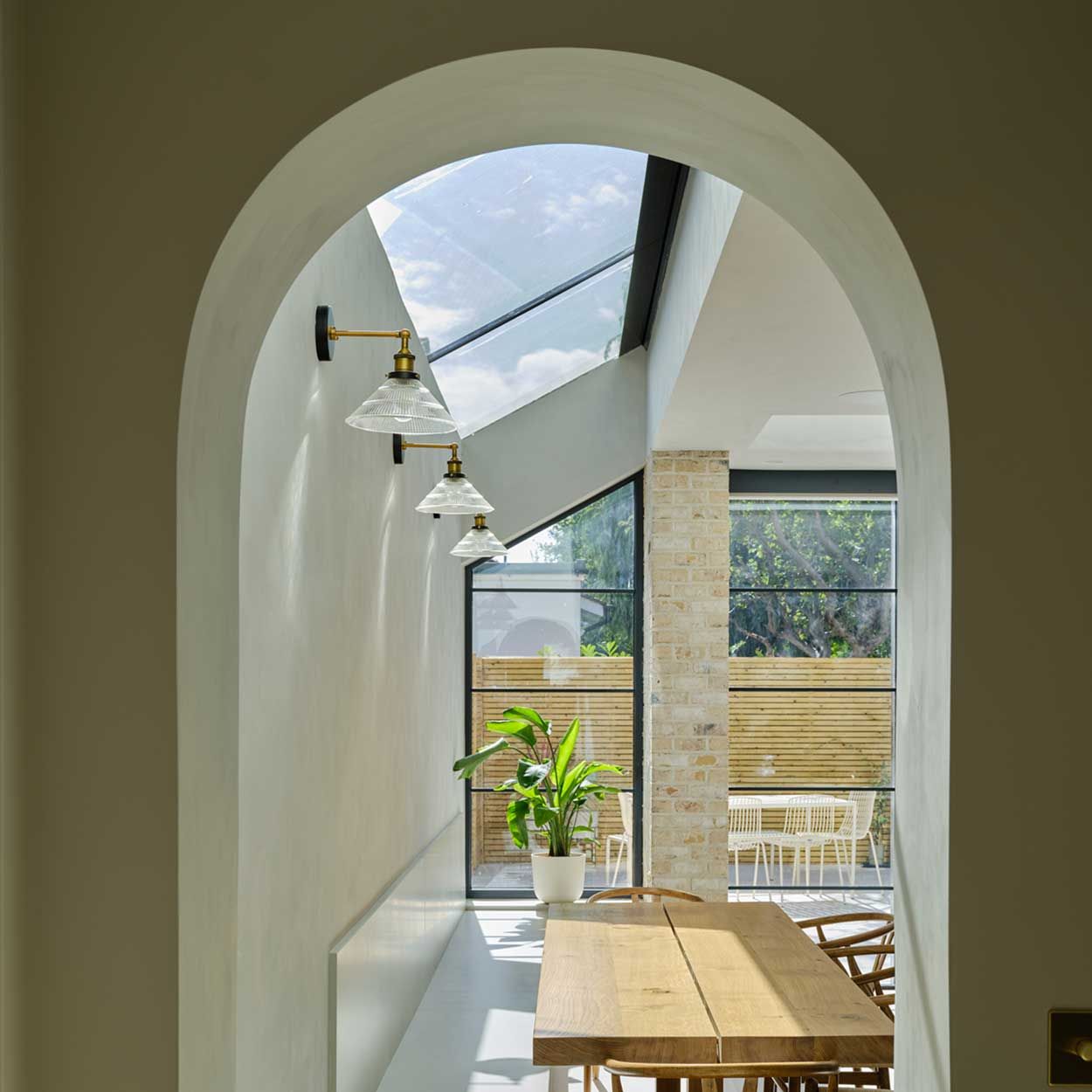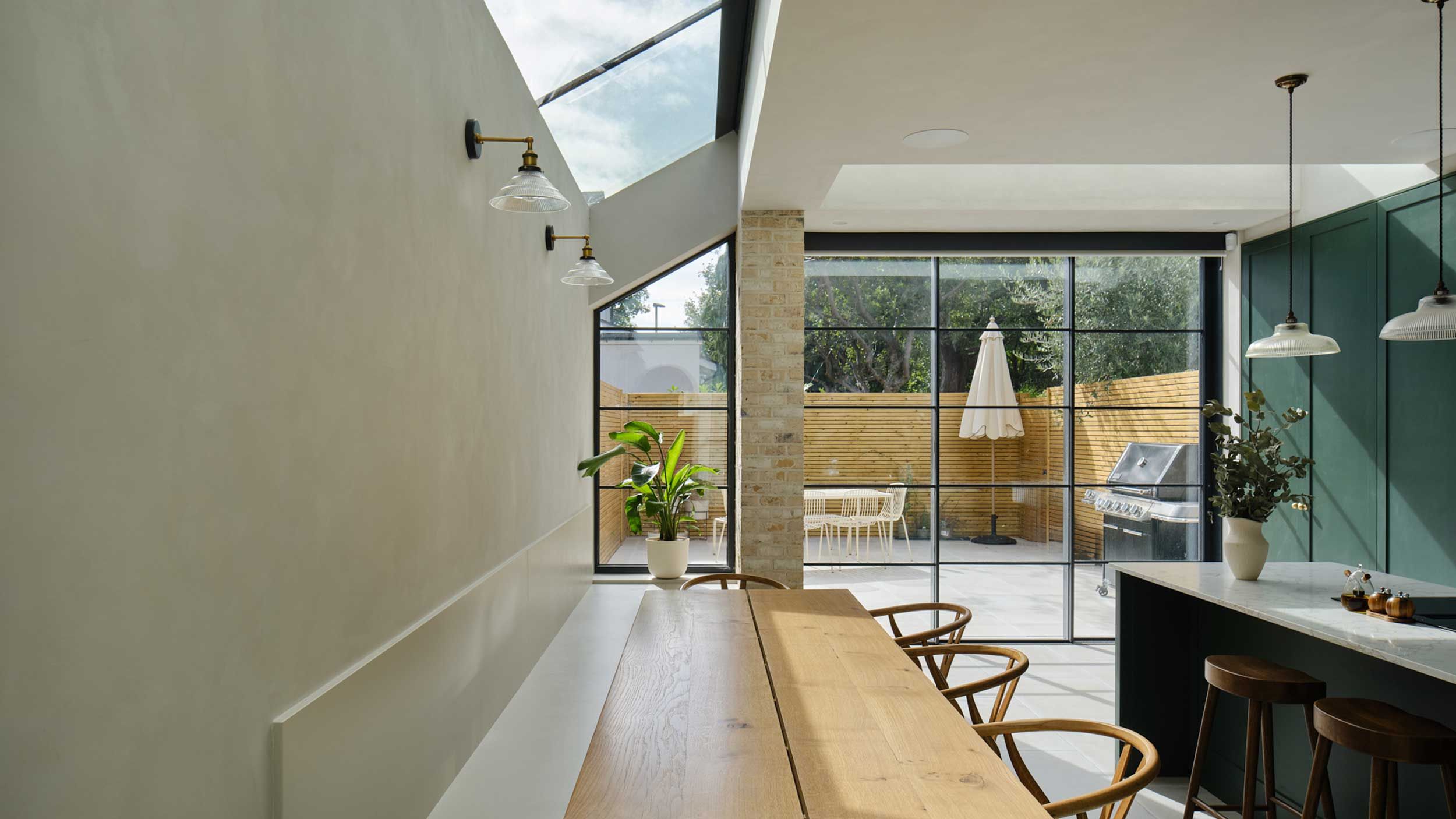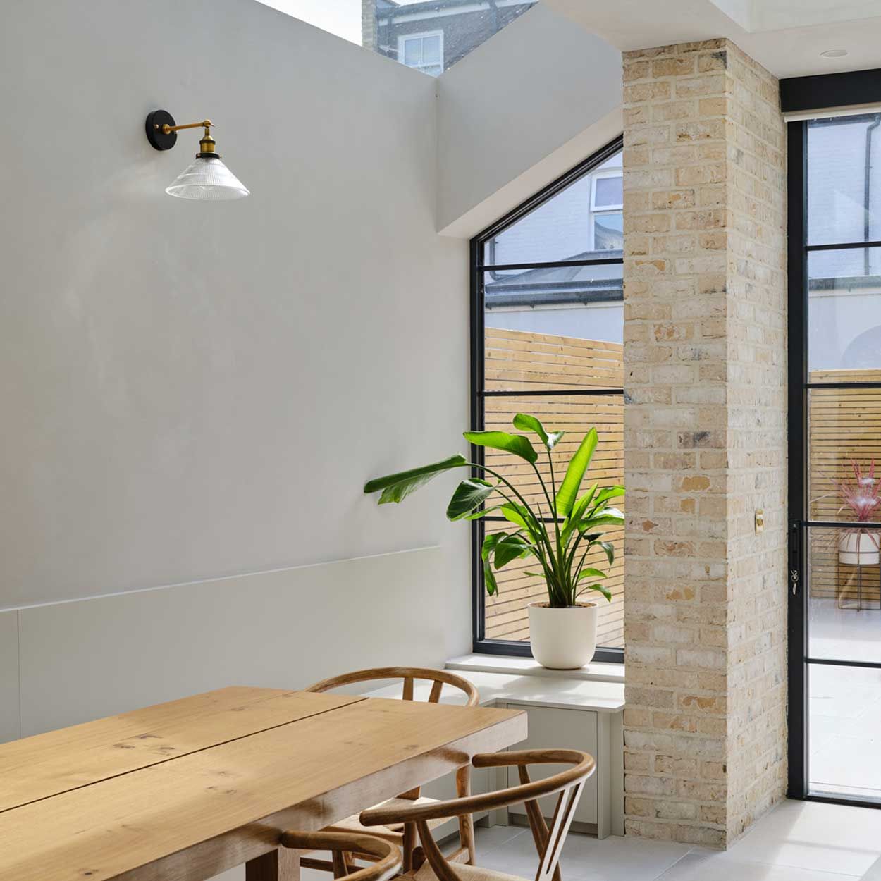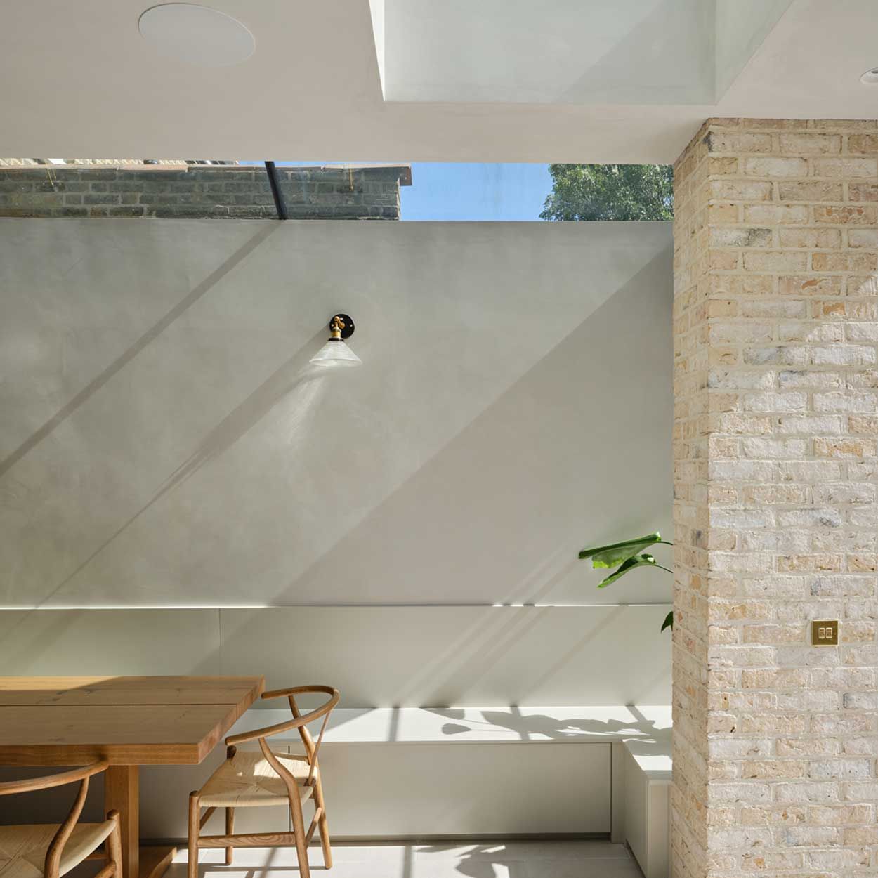 A warm blend of stone and wood flooring, and pale buff brick used both inside and out for a seamless, tactile feel