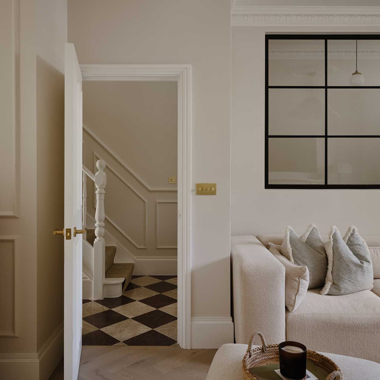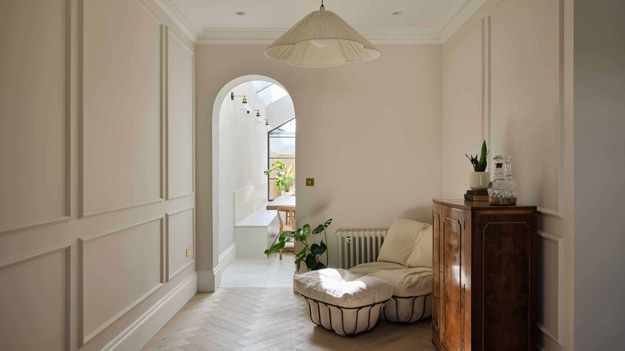 A full home transformation, starting with a wraparound ground floor extension to create a bright, welcoming kitchen-diner perfect for hosting. The reception rooms were refurbished, the front elevation redesigned, and the windows reimagined for a refreshed street presence. The aesthetic was guided by earthy textures and natural tones, balanced with light-filled, open-plan living spaces. Think lime-wash finishes in the kitchen and master suite, a warm blend of stone and wood flooring, and pale buff brick used both inside and out for a seamless, tactile feel. This home is now a calm yet vibrant space, designed for modern living and entertaining.