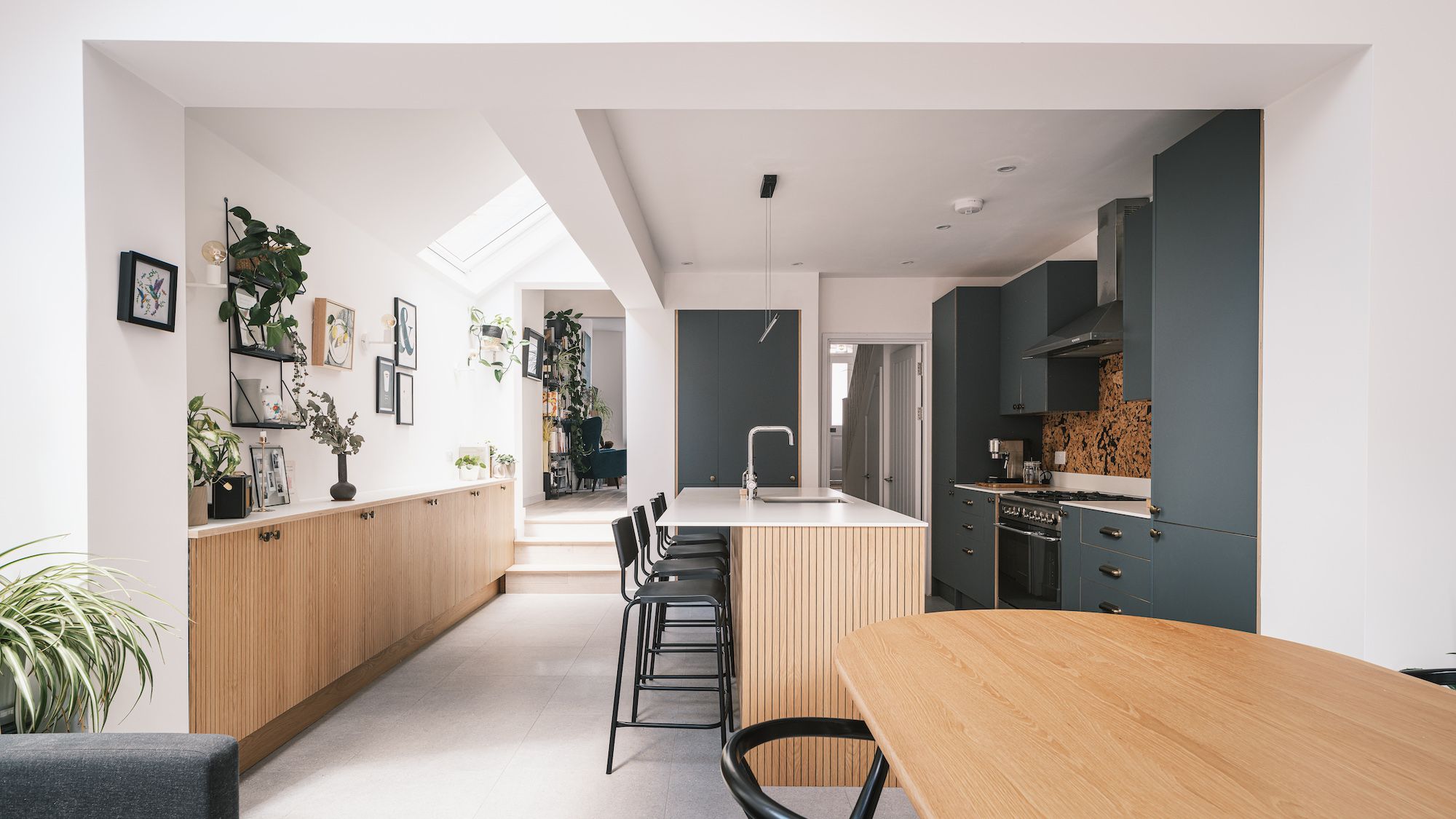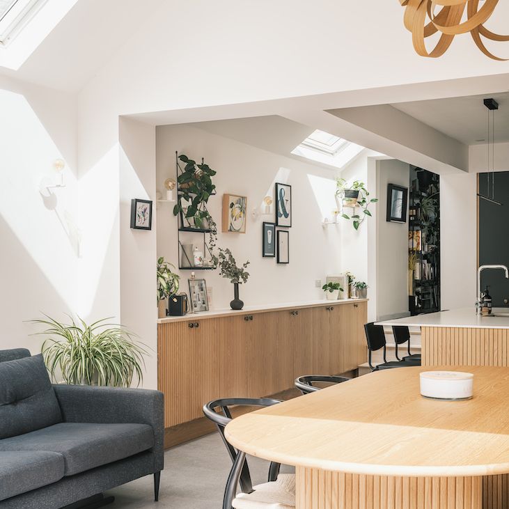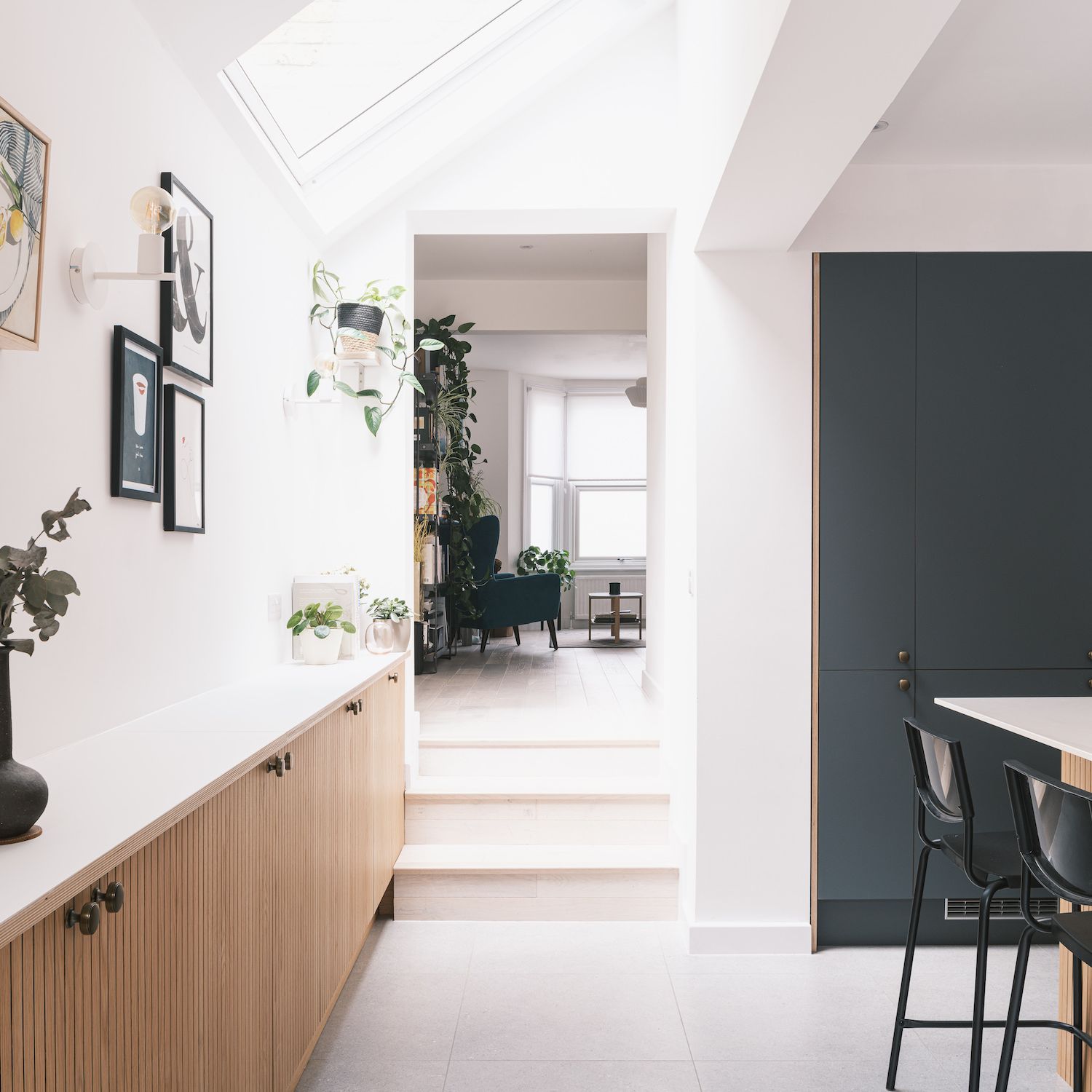 Side and rear wraparound extension and refurbishment of an Edwardian property in Tooting. A bright, clean minimalist aesthetic was a key aspect of the client's brief. They also wanted to improve the flow between the front and rear of the property with access to the kitchen / diner via the reception rooms as well as the hallway.