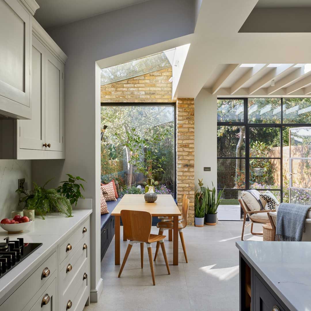 A rear and side extension designed to meet the needs of a family with children, creating a central hub within the home that is social, flexible, and well-connected to the garden. The overall design aims to preserve some of the traditional features while offering a bright and modern internal space to the rear.
